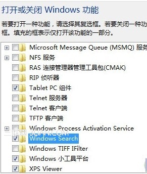 在随后打开的对话框中,找到并勾选“Windows Serach”