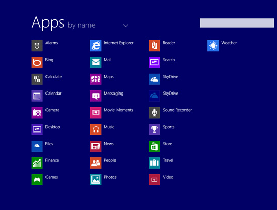 不 过据消息人士的透露,微软计划允许用户点击新的开始按钮后默认显示“所有应用”视图,如果你不想进入开始屏幕的活动瓷片界面就可以这样来设置。也就是说, 用户在选择新的开始按钮之后,系统将会弹出一个罗列出所有应用的图标的“开始屏幕”,并没有翻滚的活动瓷片。用户可以根据应用的使用率来排列这些图标,让 一些常用的应用排在前面。这样的视图应该比较接近Windows 7的开始菜单,不过这里的是全屏显示,而不是以列表的形式出现。