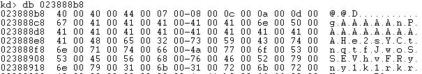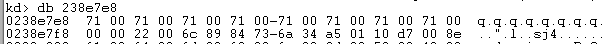 输入“qqqqqqqq”调试显示 DUMP 如下: