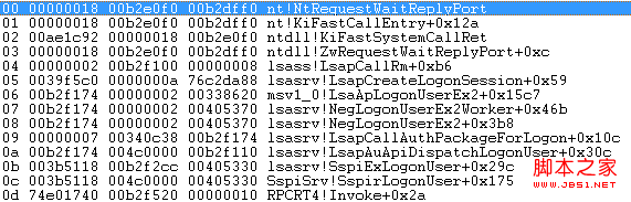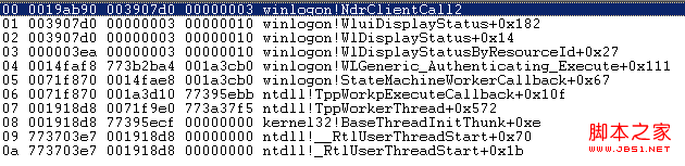 Winlogon 同 logonUI 的 authui.dll 中通过一一对应的 RPC 函数完成接口调用,下面是一次错误密码测 试过程时,依次命中的调用情况: