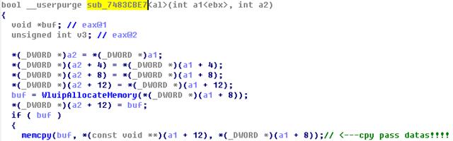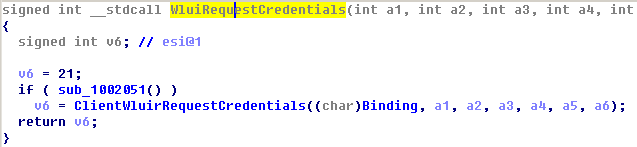 其中 WluirRequestCredentials很惹人关注,对应的 winlogon!WluirRequestCredentials函数如下: