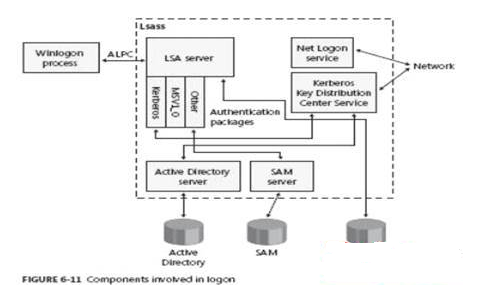 LogonUI.exe 负责用户认证界面,Windows7 以后不再使用 msgina.dll,而是使用多个进程配合,完成用户 认证过程,大致过程为 1、Winlogon 启动 LogonUI 等待用户输入凭证 2、Winlogon 通过 ALPC 通知 Lsass用户登录 3、Lsass 依次查询认证模块【本地认证 MSV1_0.dll】4、Lsass 返回认证结果。框图如下