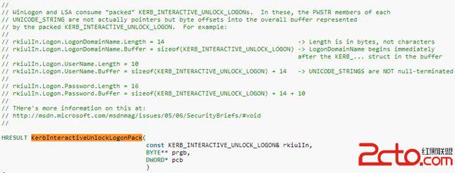 函数 KerbInteractiveUnlockLogonPack是一个可以 google 到的函数,很好。