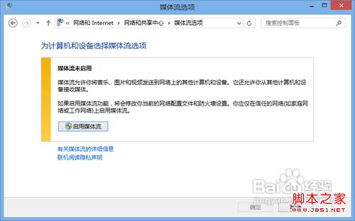 设置完成后返回到第二步所示的“高级共享设置”中,继续找到“媒体流”选项区域,点击“选择媒体流”链接。