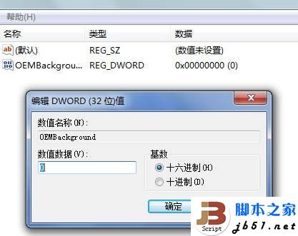 2.在注册表依次展开,找到以下键值: HKEY_LOCAL_MACHINE\SOFTWARE\Microsoft\Windows\CurrentVersion\Authentication\LogonUI\Background 将OEMBackground的值改为“1”。