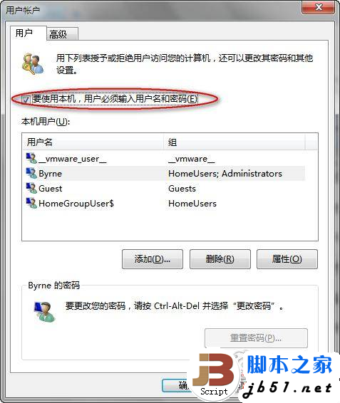 2、在高级用户控制面板中,取消对“要使用本机,用户需输入用户名和密码(E)”项的勾选;