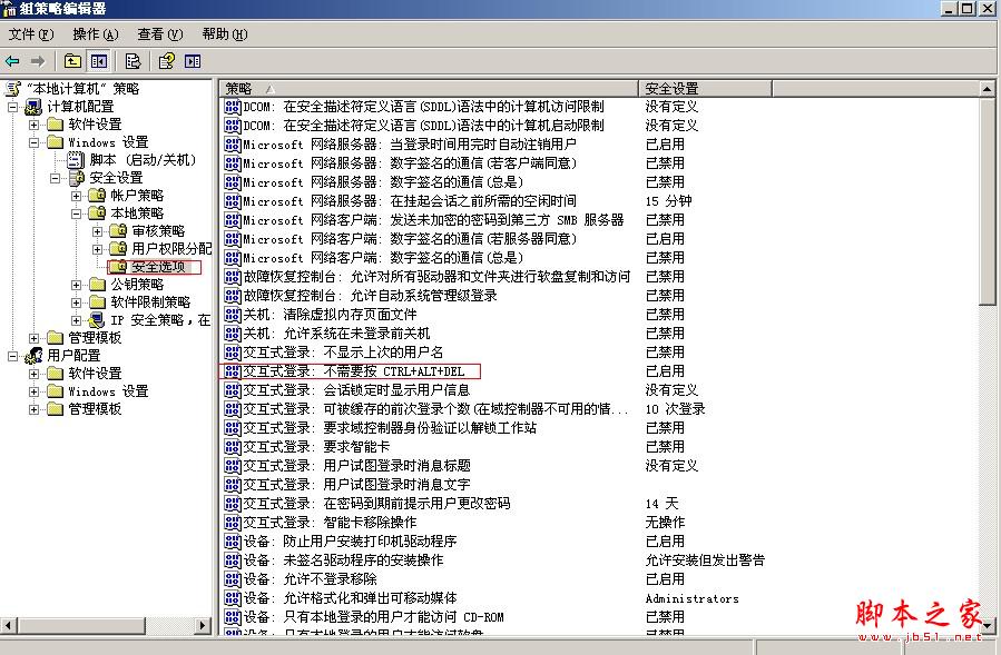 3 计算机配置-〉windows设置-〉安全设置-〉本地策略-〉安全选项-〉
