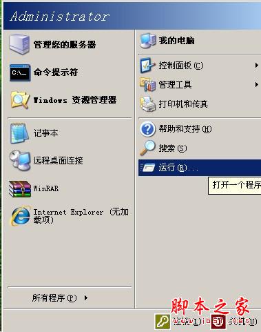 1.在开始菜单点击“运行”