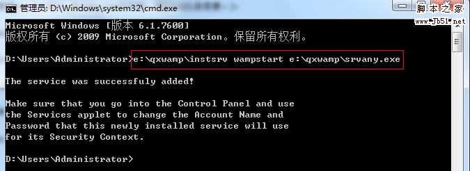 e:\qxwamp\instsrv wampstart e:\qxwamp\srvany.exe