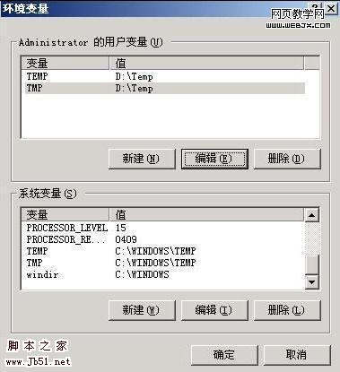 这个时候点击编辑把TEMP和TMP的路径改为D:/TEMP。然后在系统变量中点击下拉框拉到最底部拉。