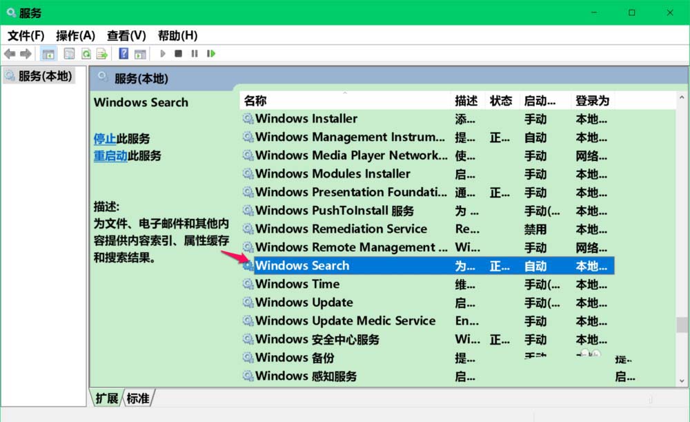 Windows 10-1809版系统可以关闭的几项功能第三项功能:关闭Windows Search服务默认情况下,Windows 10系统自带的 Windows Search 服务处于自动运行状态,Windows Search 服务带来了快捷方便强大的搜索功能,但我们很少用到此功能,且其在后台建立索引耗费了大量资源并对硬盘可能产生伤害,特别是使用SSD硬盘的电脑,Windows Search服务更没有必要了,我们可以将其关闭。