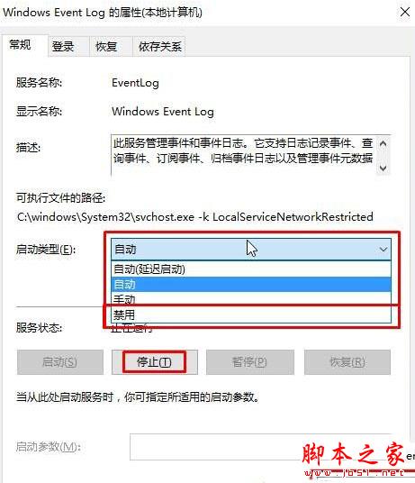 2、双击点击 Windows Event Log服务,首先将“启动类型”修改为“手动”,然后点击【停止】,点击应用并确定即可;