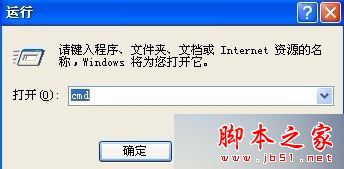 1、在“开始→运行”对话框中键入“CMD”命令,点击“确定”按钮;