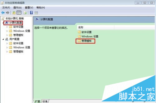 2、双击后就出现如图的情况,不专业呀,找到计算机配置下的【管理模板】;