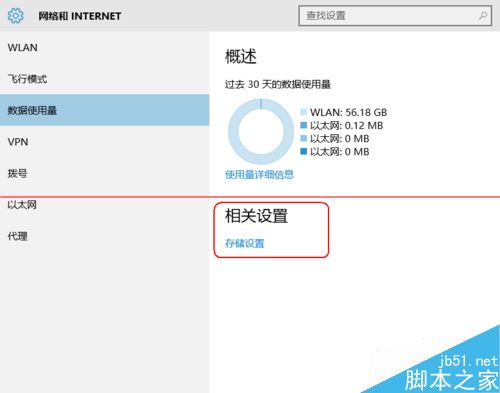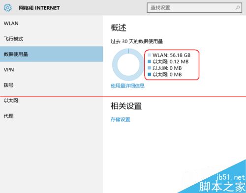 3、接着,单击“数据使用量”。是不是你的流量在右侧一目了然。