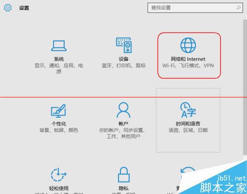 2、然后,再出现的设置面板中,单击“网络和Internet”。