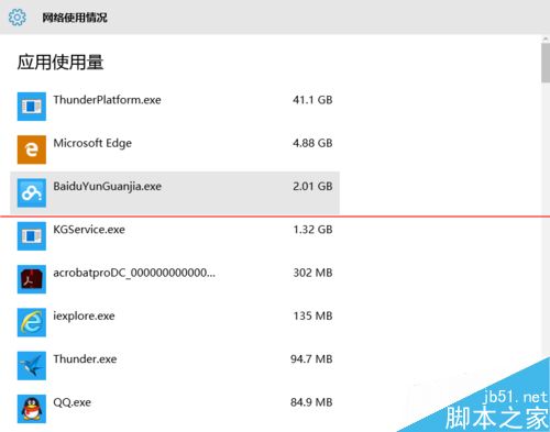 4、单击“使用量详细信息”,你就能看到每个应用的信息了。