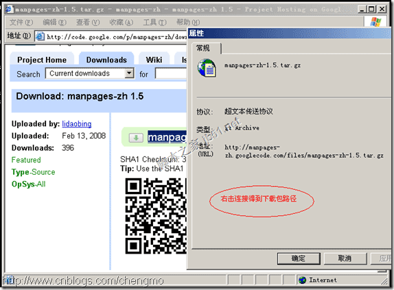 1.打开http://code.google.com/p/manpages-zh/ 点击下方的:manpages-zh-1.5.tar.gz