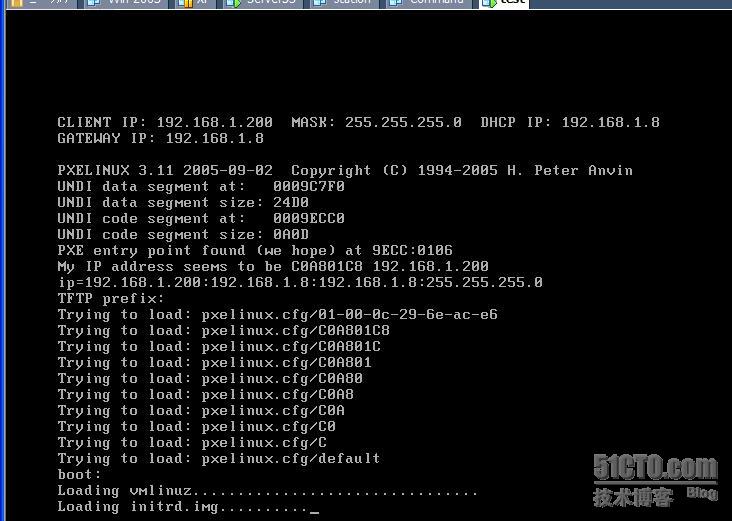 filename "pxelinux.0"; //PXE得到IP以后的引导文件