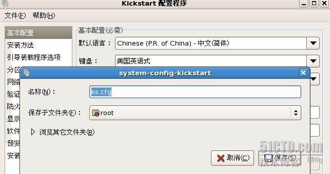 1)图形化界面配置:(终端中运行system-config-kickstart命令)