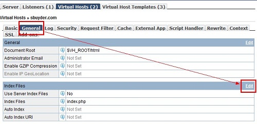 设定Index Files,这一项主要是告诉Litespeed当用户访问时谁来做主页~