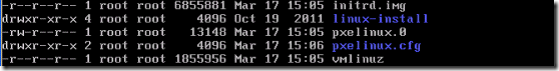 把光盘中的initrd.img (驱动文件)和vmlinuz(内核文件)拷贝到当前目录
