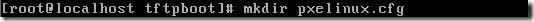 为pxelinux。0建立一个目录pxelinux.cfg(当系统调用pxelinux.0的时候必定要读取pxelinux.cfg目录下的配置文件default)