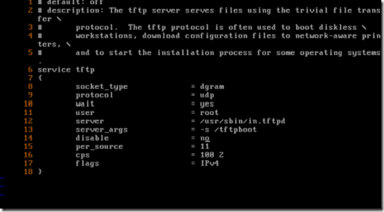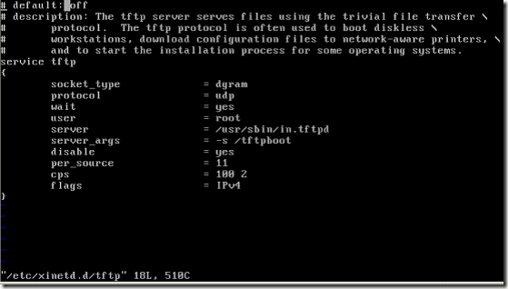 通过/etc/xinetd.d/tftp说明tftp服务属于超级守护进程所控制的