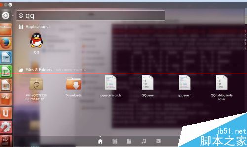 6、通常会在桌面生出qq程序运行图标,点击可以运行,如果没有,可以在dash中搜索qq,如图所示,找到该程序。