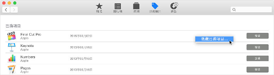 Mac App Store中的已购项目隐藏和取消隐藏教程