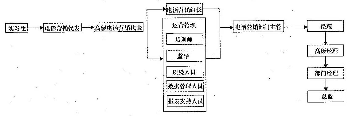 在美国等发达国家,目前电话营销产业发展已经非常成熟,职业晋升的机制与时间段比较稳定,相对而言可以预测晋升的进度;在中国,电话营销产业发展尚未进入成熟期,所以晋升空间与机制还有很多需要改善的地方。很多人为的决策而不是制度的决策在起作用,相信随着社会和产业的发展,我国的电话营销产业也会越来越规范,职位的晋升与能力和绩效贡献正向挂钩。