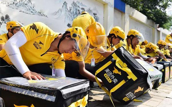 看到清一色的黄色就能知道是美团,美团的代表就是一身黄色的衣服,不过我们平常点外卖喜欢用美团,因为美团的速度真的比较快,服务也好,所以美团在消费者心中的评价还是很不错的。