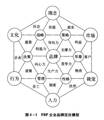 为了在企业品牌建设定位过程中掉人F.W.M.T.s陷阱,上海复为品牌策划公司以辨证的哲学理论,结合其十多年的实践,创造了“FBP(FOVCOMBRAND POSITION)模型”(见图4—1)。从而改变国内长期存在的“表象性”或“促销式”企业品牌定位现象,为中国企业实施品牌战略提供了定位方法与理论依据。企业品牌定位并不是一成不变的,在某些情况下,比如由于企业品牌的销售额下降或预测到其他的市场机会的时候,企业可以根据具体情况尝试去改变企业品牌的定位,以使企业品牌定位更能符合消费者的需求。坚持企业品牌定位主要是指对于一个成功的,并在消费者头脑中已成型的定位。