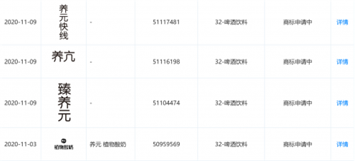 同时,据中国商标网显示,养元饮品近期还申请了“养元 植物酸奶”商标,申请注册号为50959569,类别为啤酒饮料。