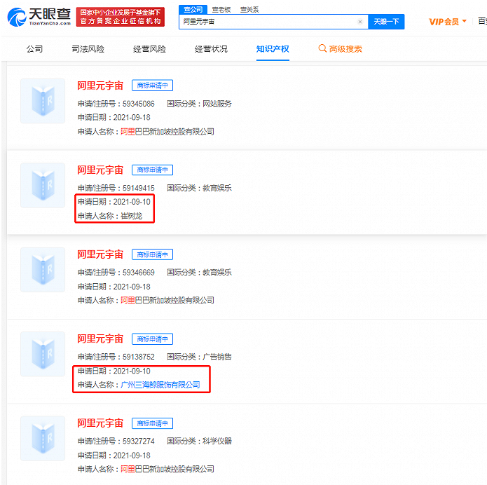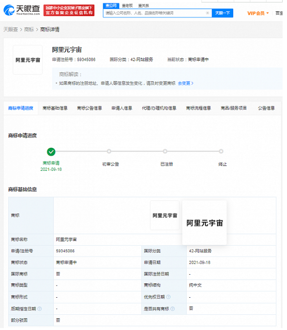 值得一提的是,“阿里元宇宙”商标曾于9月10日被其他自然人及公司抢注,目前商标状态均为申请中。