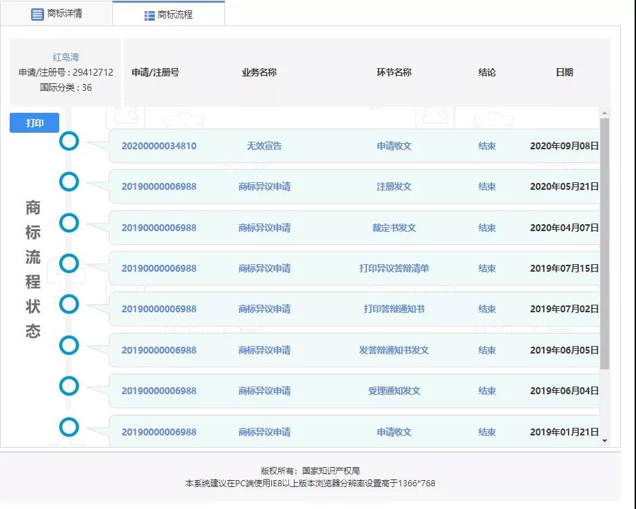 在查询商标流程时,发现这一商标在申请注册过程中也出现过异议申请,而且该商标的无效宣告在2020年9月8日已结束了申请收文环节。