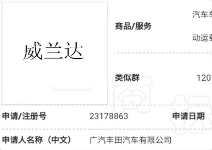 广汽丰田官方近日向有关部门申请注册了“威兰达”和“Wildlander”商标。有消息称,这套中英文名称将用于未来由广汽丰田引入投产的、基于全新RAV4打造的全新紧凑型SUV。以卡罗拉/雷凌、C-HR/奕泽IZOA这些先例车型作为参考,我们预计,威兰达或仅会在设计上与将于10月上市的一汽丰田全新RAV4荣放做出区别。