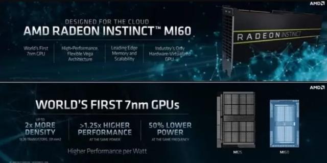 新款Vega核心在7nm工艺加持下,晶体管密度增加一倍,在331mm的核心面积中集成了132亿晶体管,作为参考14nm Vega核心核心面积484mm晶体管数量却为125亿,进步相当明显。并且由于新工艺的应用,在相同功耗情况下,性能提升25%;同样频率下,功耗下降50%,这将使得AMD显卡性能大增。