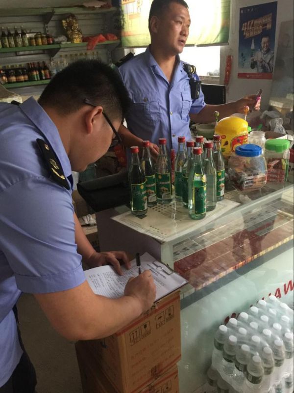 7月30日上午,“牛栏山”白酒打假人员到大泽乡市场监管所举报,称辖区内某商店正在销售假冒牛栏山陈酿白酒。接到举报后,大泽乡市监所迅速组织执法人员开展执法检查。